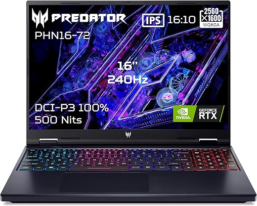 Acer Predator Helios 16 PHN16-72-94FH, Ordinateur Portable Gaming 16″ WQXGA IPS 240Hz, PC Portable Gamer (Intel Core i9-14900HX, RAM 32Go, 1024 Go SSD, NVIDIA GeForce RTX 4070,…