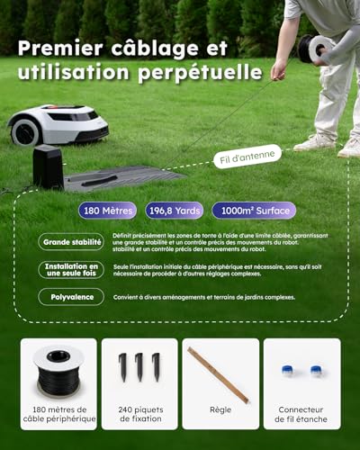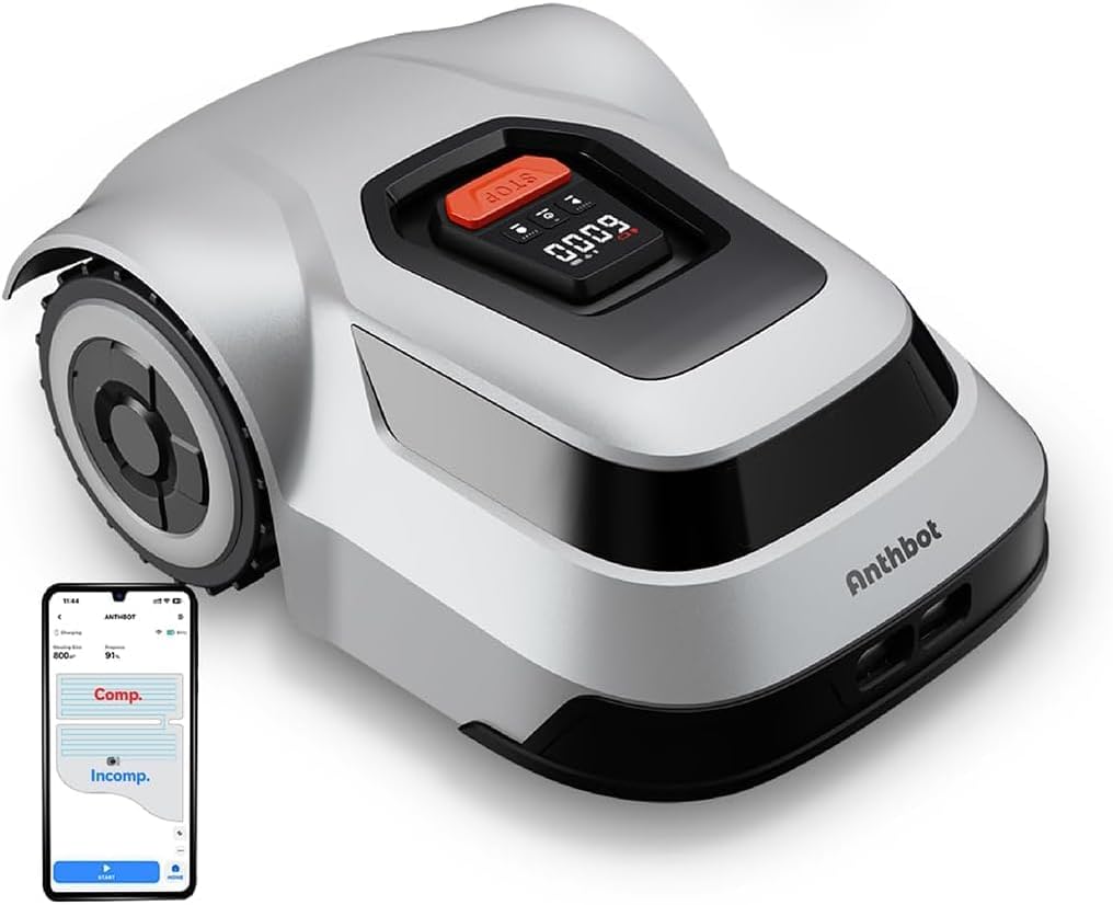 ANTHBOT Robot Tondeuse à Gazon Automatique – Surface de 1000 m², Technologie Cable-TOF, Trajectoire en U, Contrôle Via Application, Cartographie Précise, pour Pentes Maximales…