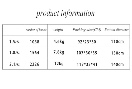 Informations produit : Le sapin de Noël est disponible en trois tailles : 1,5/1,8/2,1 m, composé de feuilles floquées et de métal, solide et durable. Longue durée d’utilisation