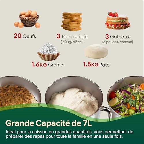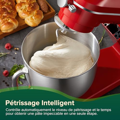 【Mélange Planétaire à 360° à contact total + Moteur de 1800 W】Finies les impasses ! Pétrissage facile, fouettage rapide, garantissant un mélange complet et homogène des ingrédients dans le bol.