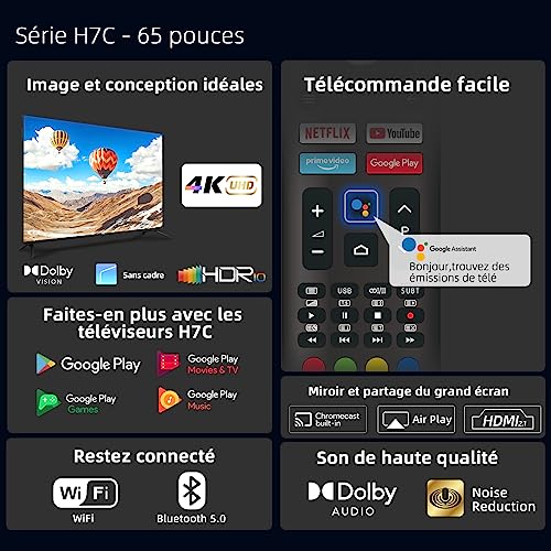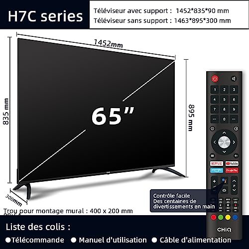 Soyez le premier à laisser votre avis sur “CHIQ U65H7C, Smart TV de 65 Pouces, UHD, 4K, Dolby Vision,Bluetooth, Google Assistant, Netflix, Prime Video, 3 HDMI, 2 USB” Annuler la réponse