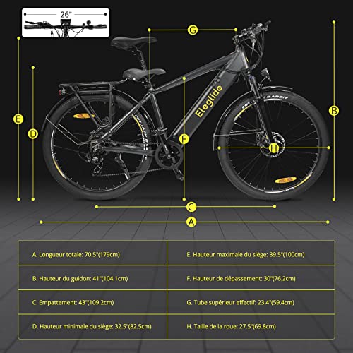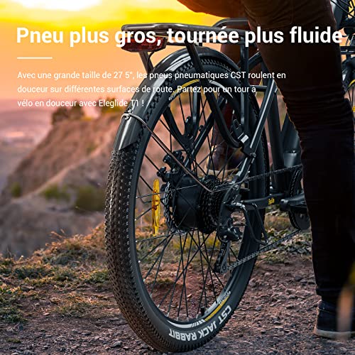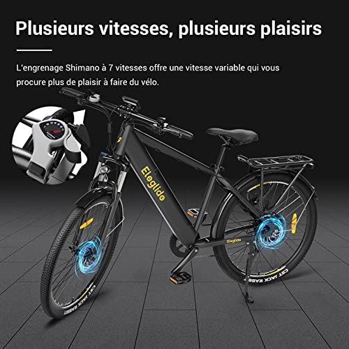 • 【Accessoires de qualité】Le vélo de montagne électrique Eleglide est équipé de composants de haute qualité; pneus pneumatiques CST de 27,5 pouces, qui peuvent s’adapter à toutes sortes de surfaces routières. Dérailleur Shimano à 7 vitesses à l’arrière. Écran LCD intelligent affichant diverses informations. Rendez votre trajet plus intelligent et plus facile.