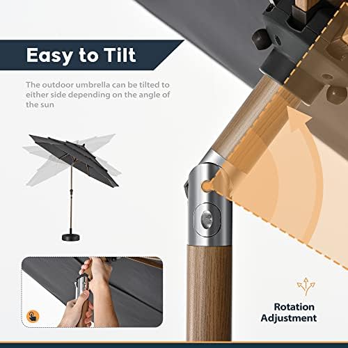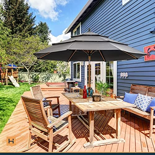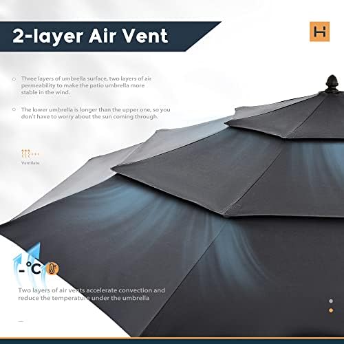 HAPPATIO Parasol de terrasse d’extérieur à 3 étages ventilé en grain de bois de 2,7 m avec tissu acrylique teint en fil de 250 g/m² (gris)