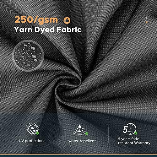 • Tissu acrylique teint en fil : ce parasol de terrasse de 2,7 m est fabriqué en tissu acrylique de 250 g/m² de haute qualité, qui est hydrofuge et résistant aux UV. Nous garantissons que notre parasol de terrasse résiste à la décoloration pendant 5 ans.