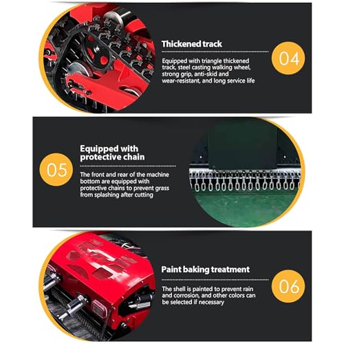 ★TAILLE GLOBALE – 36,61×33,86×22,83″ ✅Capacité du réservoir de carburant : 4 litres ✅Poids net de la machine : 280 lb. ✅Consommation de carburant standard : 1,2 litres/heure ✅Largeur de coupe : 55 cm ✅Hauteur de coupe : 2 cm-18 cm