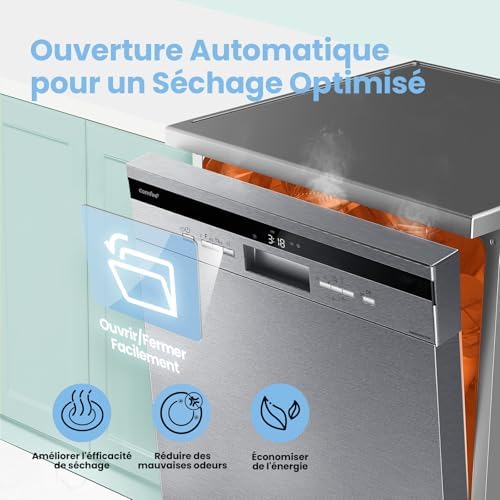 [Silencieux – 44 dB] Silentech de Comfee supprime le bruit du lave-vaisselle, passant en dessous de 44 dB. Cette technologie vous permet de ne jamais avoir à attendre l’heure du coucher pour faire fonctionner le lave-vaisselle.