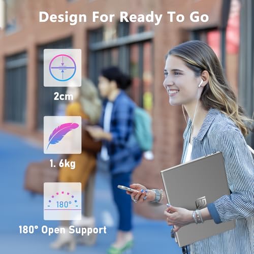 - 💻【Corps mince et ajustable】Expérimentez des visuels époustouflants sur l’écran Full HD de 16 pouces avec une résolution de 1920×1200. Des micro-cadres de 0,5 cm et un impressionnant rapport écran/corps de 90 % garantissent une expérience visuelle immersive. Notre ordinateur portable pivote à 180° pour une expérience plus confortable. Avec un poids de 1,6 kg et une hauteur de seulement 20 mm, il est suffisamment fin, léger et élégant pour vous accompagner partout. La batterie haute capacité 6000 mAh vous permet de l’utiliser plus longtemps !