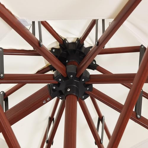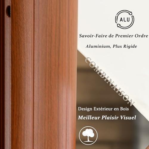 Le mât et les 8 nervures en aluminium sont recouverts d’une peinture antioxydante couleur teck, offrant un aspect naturel et empêchant la rouille, ce qui les rend plus légers et durables