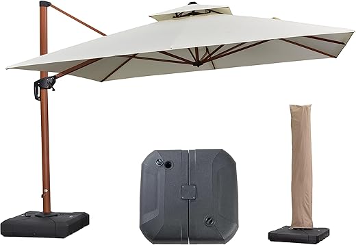 Le parasol PURPLE LEAF conception double haut de gamme est livré avec une pied de 150 KG et un abat-jour de couleur kaki. Le parasol autoportant offre une excellente ventilation et un aspect sophistiqué qui ajoute une touche d’élégance à votre espace extérieur