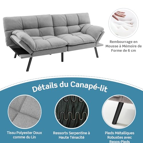 • ★RESTEZ DANS LE CONFORT★Recouvert de tissu polyester doux semblable à du lin, le canapé futon est très doux pour la peau et respirant. Le dossier et l’assise rembourrés sont remplis de mousse à mémoire de forme de 6,5 cm d’épaisseur, qui assurent un confort exceptionnel. Le plaisir du luxe vous attend, ici même !
