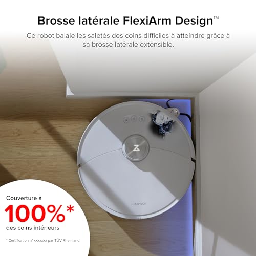 【Brosse Latérale FlexiArm Design】Aspirateur robot balaie les saletés des coins difficiles à atteindre grâce à sa brosse latérale extensible, Robot aspirateur laveur peut couvrir 100% des coins intérieurs.