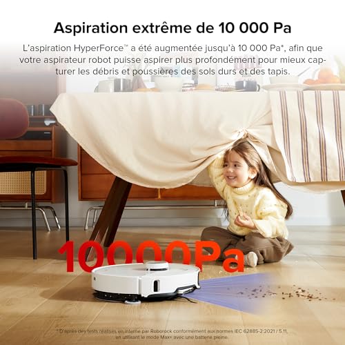 【DuoRoller Riser Brush & Aspiration 10 000 Pa】Roborock aspirateur robot laveur has meilleure efficacité d’aspiration sur tous types de sols et d’une réduction des enchevêtrements de poils.