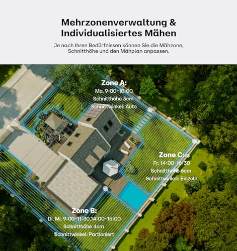 【Gestion Multizones et Tonte Personnalisée】Capable de gérer jusqu’à 10+ zones de tonte et 50 zones d’exclusion, le robot tondeuse RoboUP offre des réglages personnalisables pour la hauteur de coupe de l’herbe (3-6 cm), l’angle et le planning. Il navigue sans effort entre les différentes zones via des chemins dédiés, assurant ainsi une pelouse parfaitement entretenue.