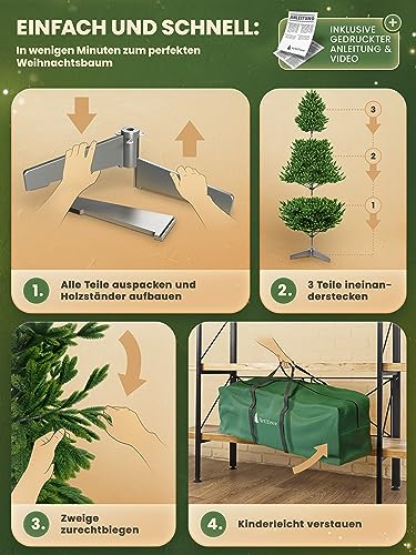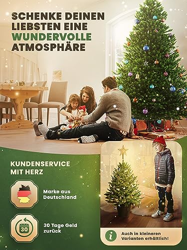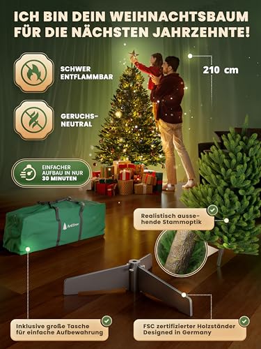 Fiable et stable : notre sapin de Noël est sûr et stable, grâce à son design allemand. Le sapin de Noël est fabriqué à partir de matériaux ignifuges, il est sans danger pour les chats et garantit ainsi une période de Noël harmonieuse pour les animaux domestiques et la famille. Votre artificiel a été soigneusement testé.