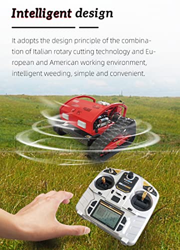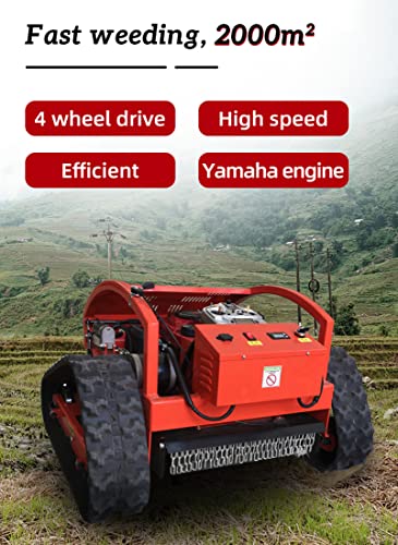 Tondeuse à Gazon robotique, Tondeuse à Essence à Quatre Temps avec télécommande, Tondeuse à chenilles de 7,5 HP, désherbage 2000㎡/h, s’élève jusqu’à 30° d’inclinaison, pour…