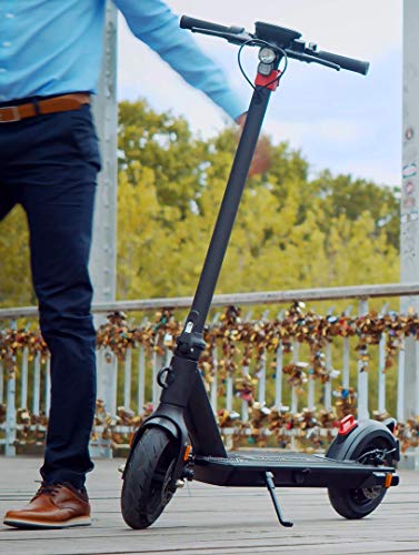 • Pneus solides : cette trottinette électrique a des roues de 10 pouces. Les pneus sont gonflables à l’avant comme à l’arrière. Les roues gonflables 10 » sont un vrai avantage pour appréhender votre environnement. Avec cette trottinette vous pouvez aller sur tous types de route.